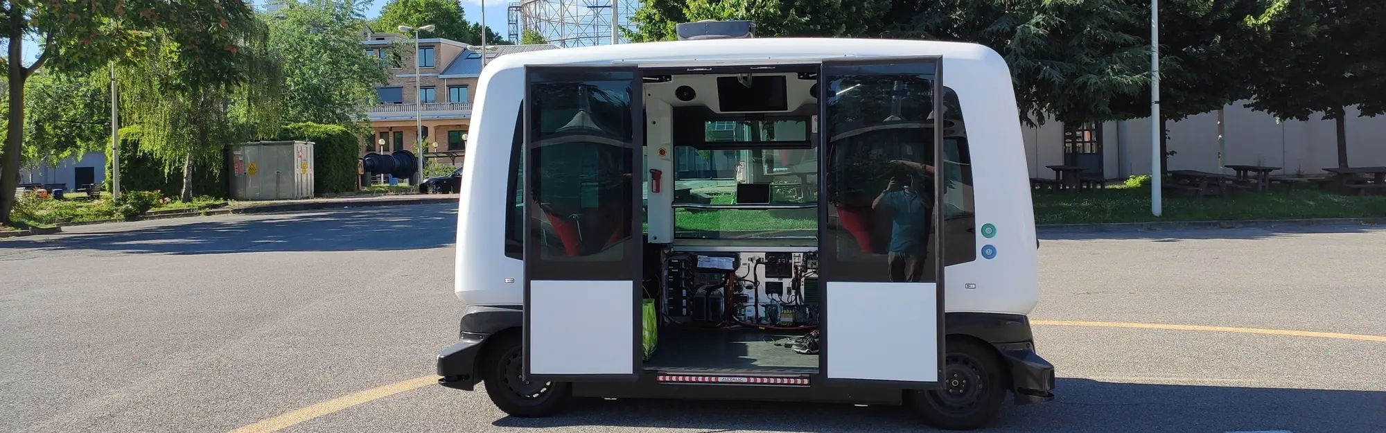 Test di stima dello stato di guida autonoma e rilevamento dell’ambiente Diversi prototipi di veicoli sono disponibili nei nostri laboratori. I veicoli sono equipaggiati con sensori per misurare lo stato del veicolo (accelerometri, giroscopi, GPS, sensore di velocità ottica e altri) e per rilevare l’ambiente circostante (telecamere, lidar, radar, ecc.). I veicoli sono anche attuati e vengono testate e confrontate intere strategie di controllo per la guida autonoma. La teleoperazione del veicolo è un’altra attività su cui stiamo lavorando.