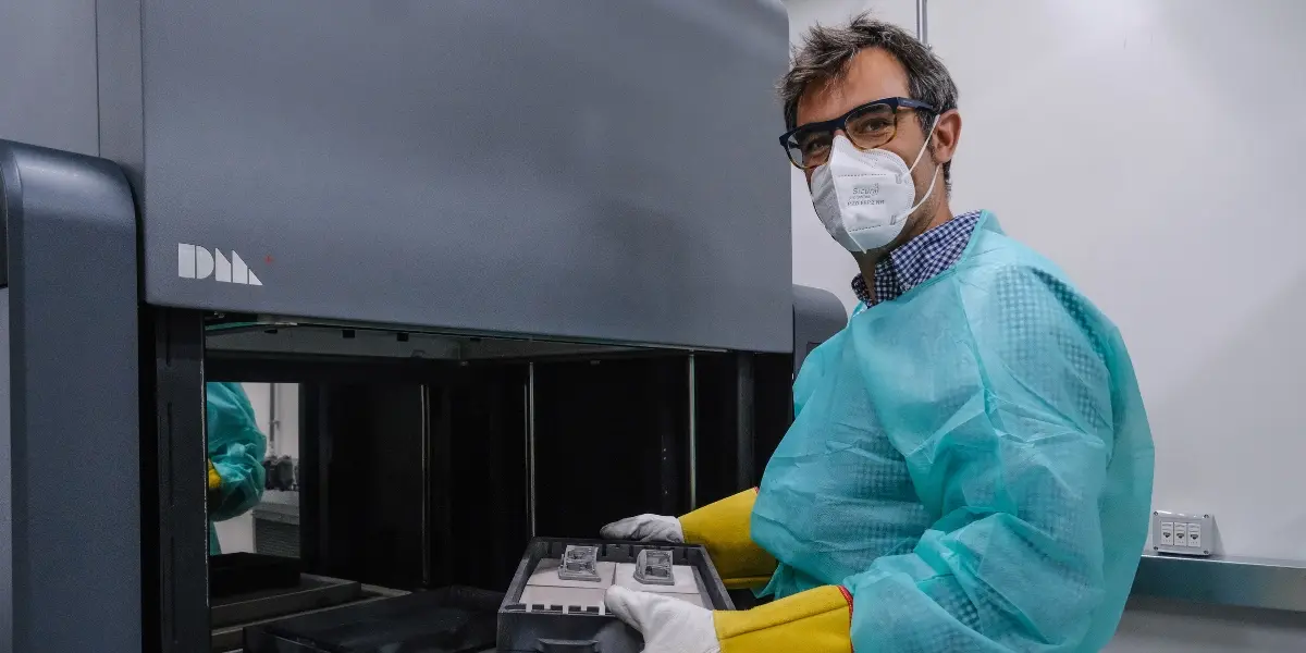 I primi componenti sono stati realizzati mediante stampa 3D in acciaio inossidabile del tipo 316L, le cui caratteristiche ben sposano le applicazioni biomedicali in interazione con tessuti biologici. La tecnologia utilizzata è la BMD(R) di Desktop Metal disponibile al Dipartimento di Meccanica. In questo processo, la stampa si basa sull’estrusione di feedstock metallico: i componenti vengono stampati sfruttando una miscela di polimero caricato del materiale metallico che viene estruso per dar forma al componente 3D. Successivamente, il componente viene ripulito dal polimero termicamente e sinterizzato in forno a 1360°C.